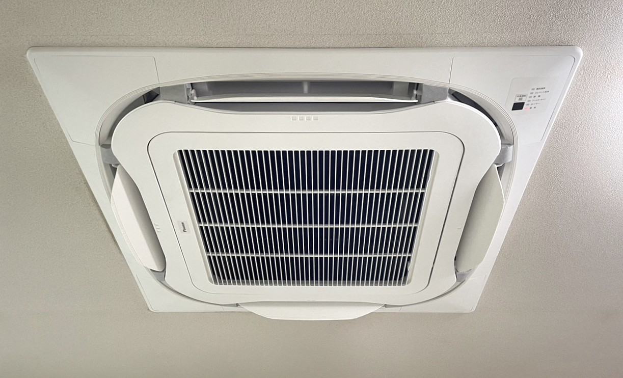本体の購入から施工までお任せ頂きました。 天井カセット形4方向 ダイキン製より同じくダイキン製SZRC63BYNV へと入替工事でした。 ホームページへ記載の対応エリア外でも出張費にて対応可能でございますのでまずはご相談くださいませ。