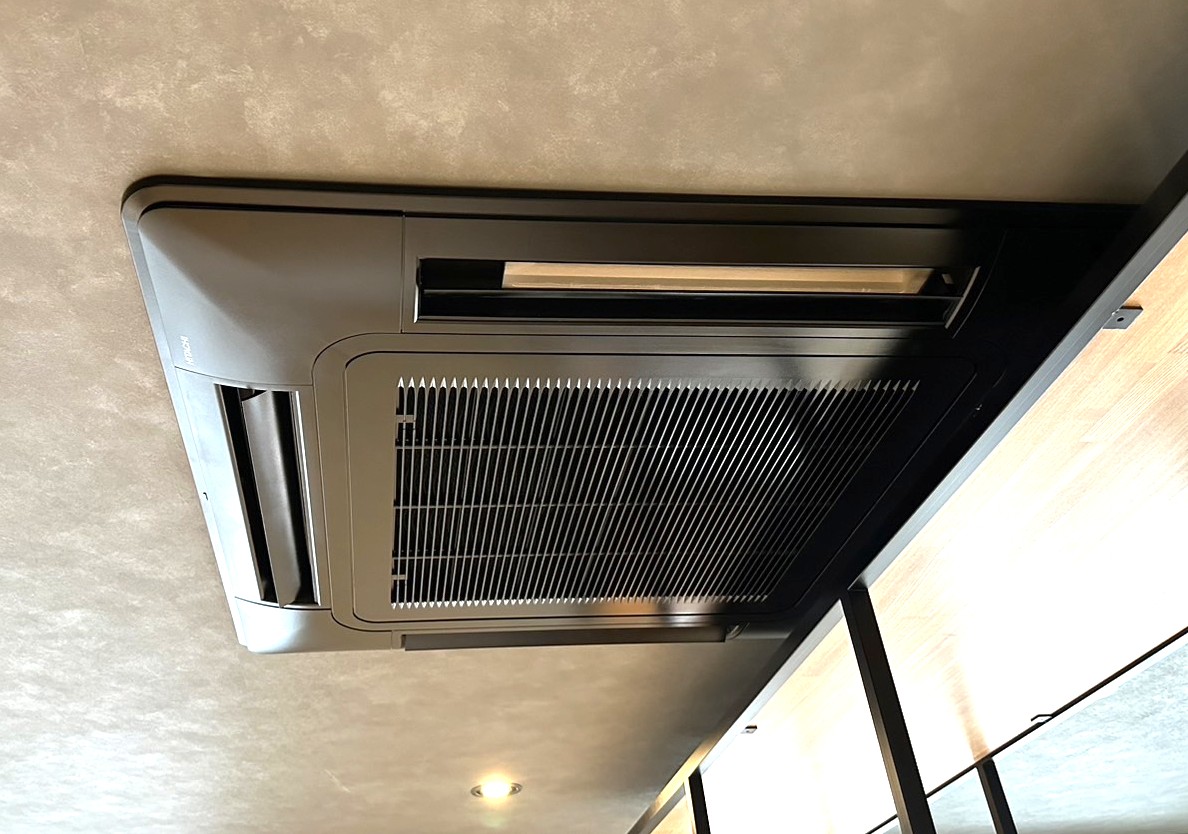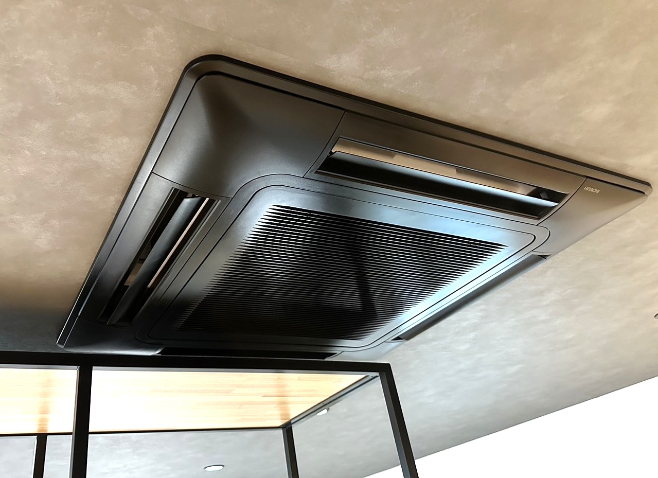 天井カセット4方向形同時ツイン 新設工事を施工させて頂きました。 本体準備から取付け、電気工事までお任せ頂きました。 エアコンは日立製 RCI-GP160RSHP8 にて施工させて頂きました。 ご依頼ありがとうございました。